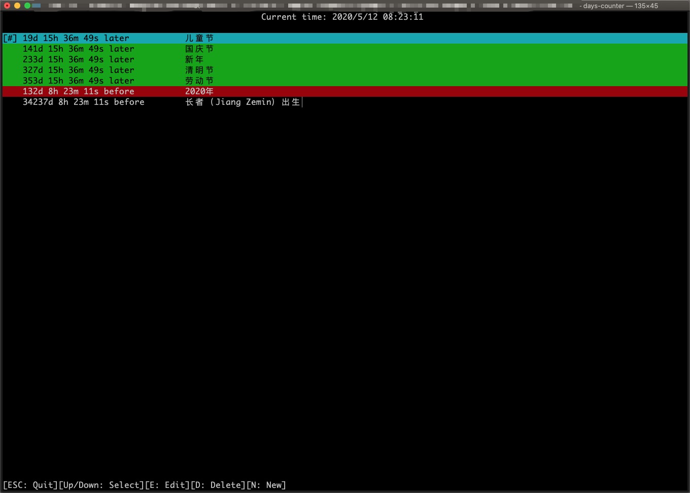 此程序会对一些即将到来的重要事件进行倒计时,对一些已经过去的事件进行正计时。